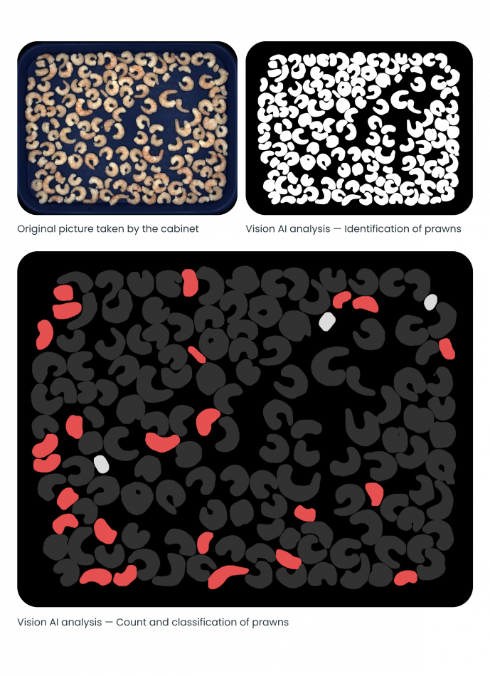 Custom-trained Vision AI model for detecting visual defects in seafood batches.