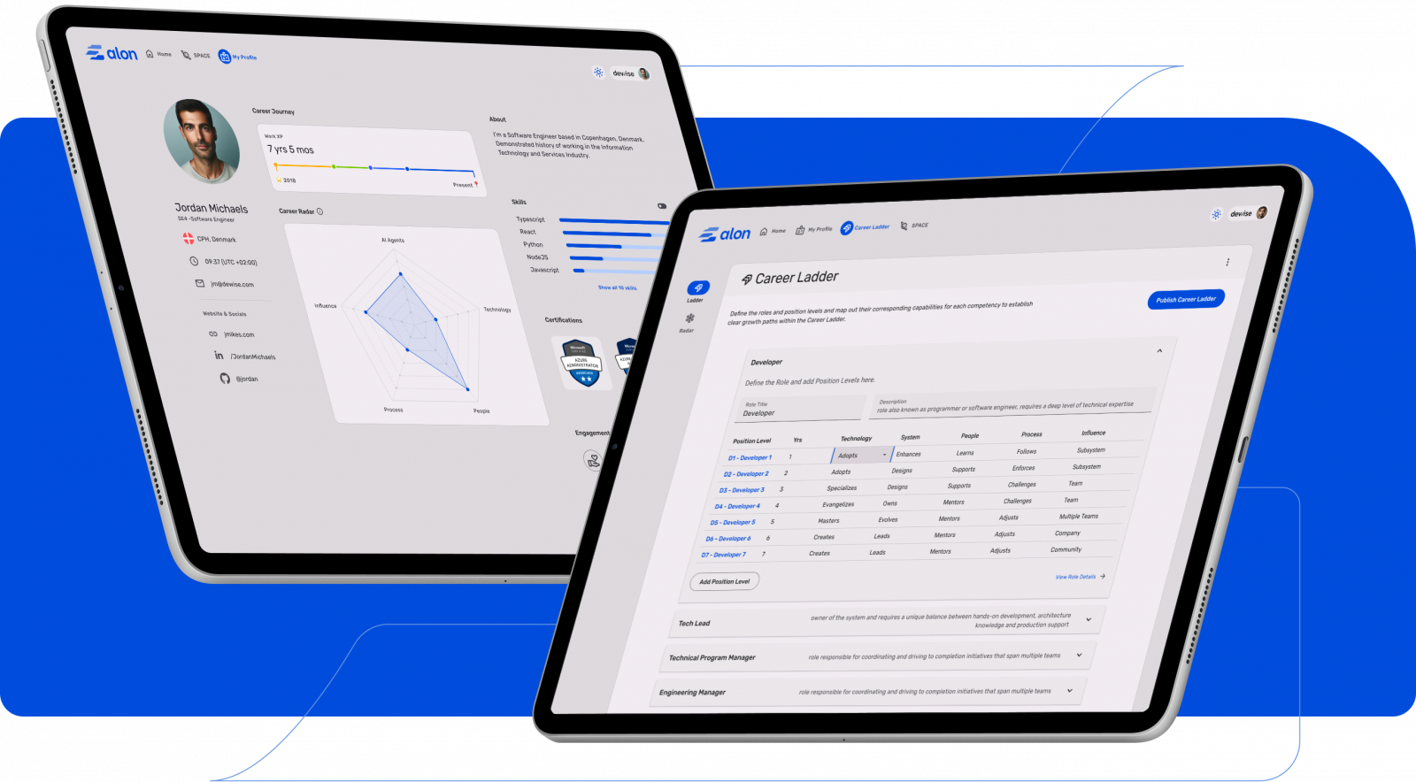 - Provide a transparent, bias-free view of each employee’s profile—including skills, certifications, education, and career journey – to support fair, evidence-based decision-making across hiring, promotion, and pay.