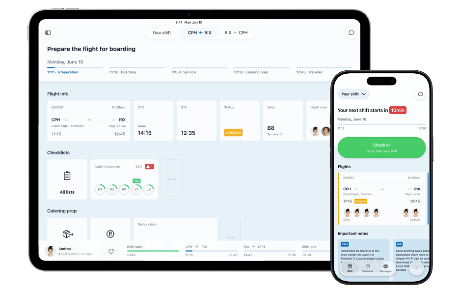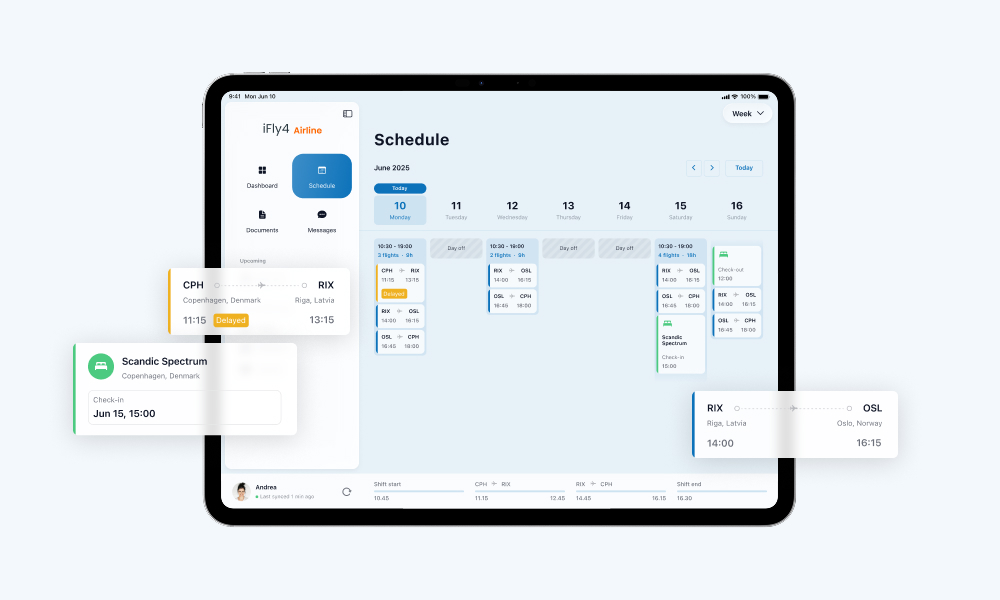 Our app communication framework is based on the ARINC 840A standard, enabling secure, standardized data exchange between crew apps – potentially offered by different vendors. It minimizes the user’s app fatigue while enabling the implementation of best-in-class solutions for specific concerns