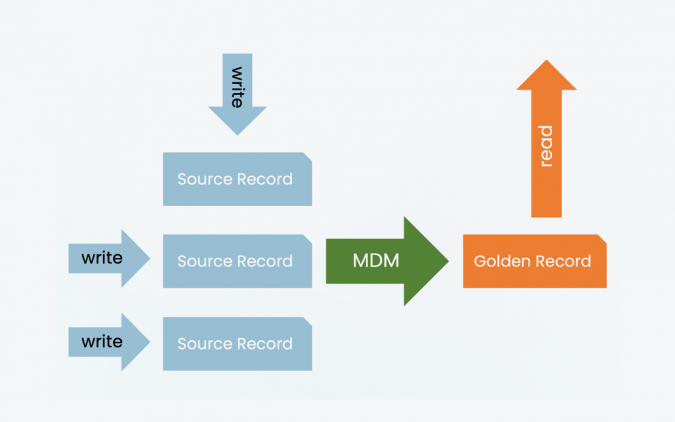 • The THP detects duplicates, links the duplicates together, and generates a resulting golden record